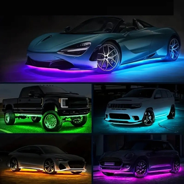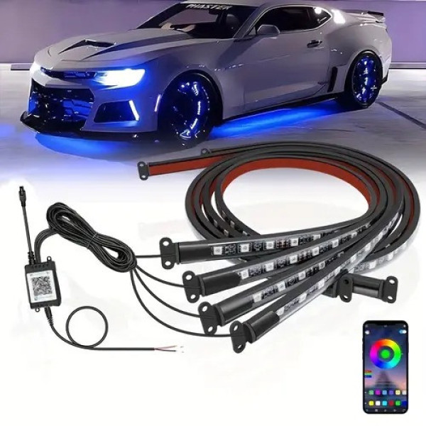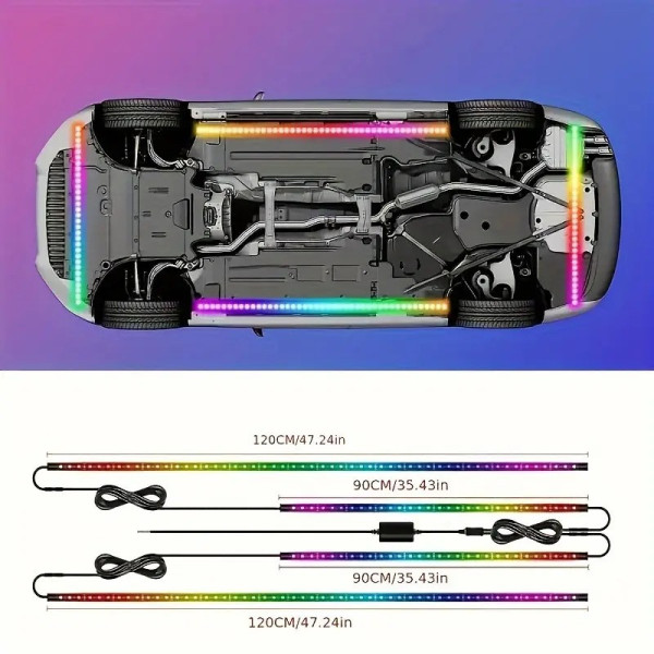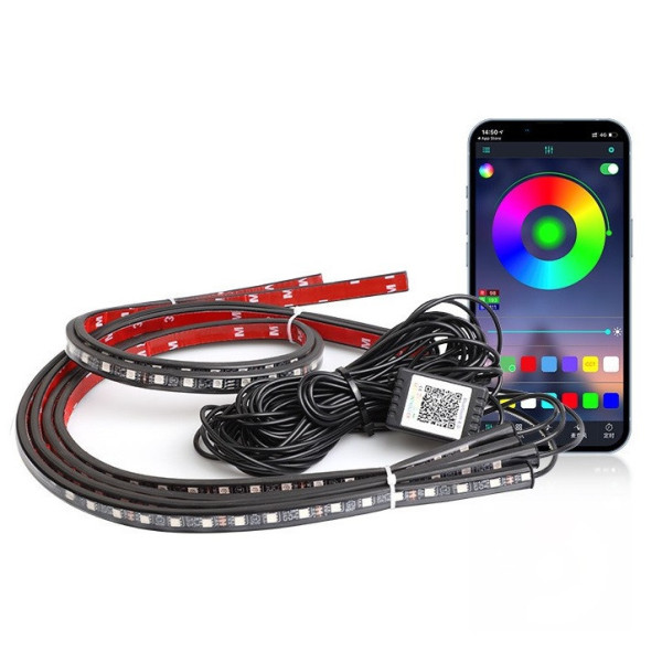 Автомобільна RGB LED-підсвітка дна з Bluetooth, 4 стрічки 90 і 120 см, 12 V