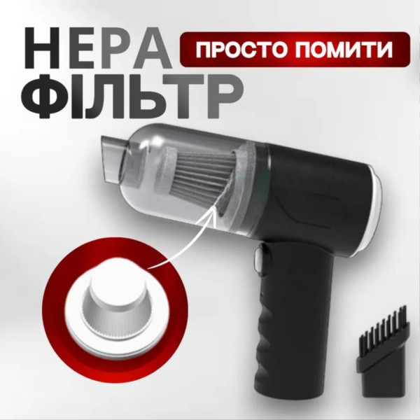 Автомобільний бездротовий пилосос 2 в 1 Vacuum Cleaner 8696 чорний, 120 Вт, 4500 Па, з насадками та підсвіткою