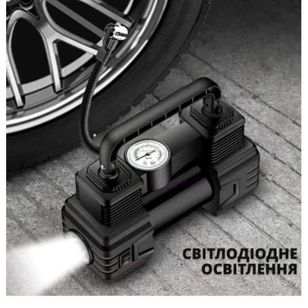 Автомобільний компресор портативний Air Pump SCK619 12 V з манометром і LED ліхтар стрілковий