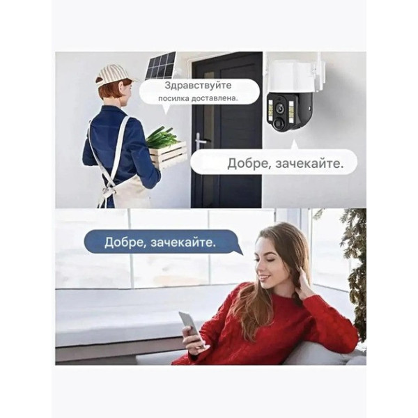 Інтелектуальний датчик руху PIR + Radar миттєво надсилає повідомлення на смартфон у разі виявлення активності. Двосторонній звук із вбудованим мікрофоном і динаміком дає змогу спілкуватися з відвідувачами або контролювати те, що відбувається на об'єкті. Міцний корпус із захистом IP66 гарантує довгий термін експлуатації та надійність камери за будь-яких погодних умов.