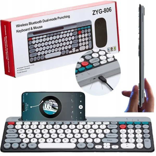 Бездротова клавіатура з мишкою ZYG-806 — сучасний комплект для роботи та навчання, що поєднує стиль, зручність і високу продуктивність. Пристрої підтримують під'єднання через Bluetooth і через USB-приймач, що робить їх універсальними для різних пристроїв: ноутбуків, ПК, планшетів і смартфонів.