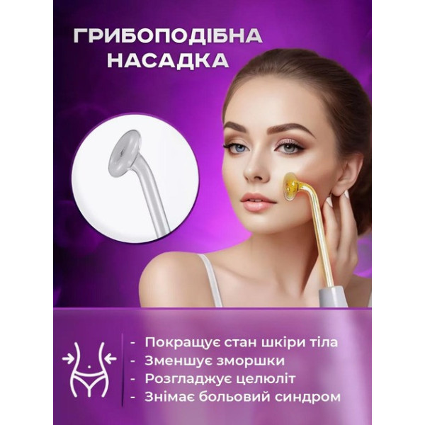 Грибовидний електрод — для обличчя, декольте та спини; дезінфекція, зменшення пор, покращення тонусу шкіри.