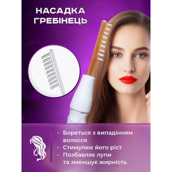 Електрод-гребінь — стимулює шкіру голови, покращує кровообіг, закриває кутикулу волосся, зменшує випадіння та прискорює ріст волосся.