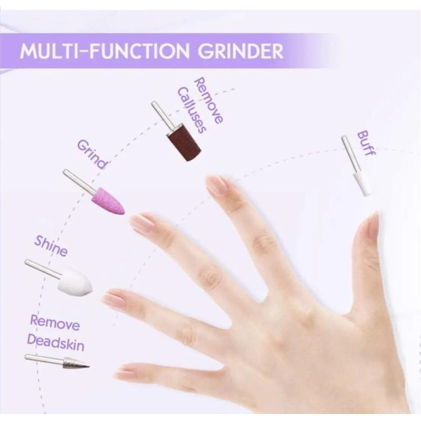 Електрична пилочка для нігтів TOUCHBeauty TB-1335 — це професійний набір для манікюру та педикюру, який дасть змогу доглядати нігті в домашніх умовах так само якісно, як у салоні. Пристрій поєднує в собі функціональність електричного інструмента та зручність вбудованої мінісушарки з УФ-світлом, забезпечуючи повний цикл догляду за нігтями рук і ніг.