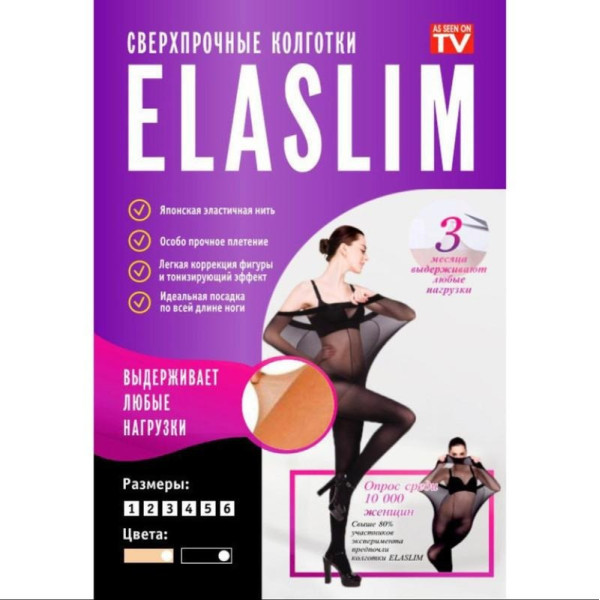 Колготки жіночі ElaSlim 40 den поєднують стиль, комфорт і високу міцність. Завдяки інноваційній японській еластичній нитці й унікальному суперміцному плетінню, вони практично не рвуться — у разі випадкового зачіпання утворюється лише маленька непомітна дірочка замість довгої стрілки.