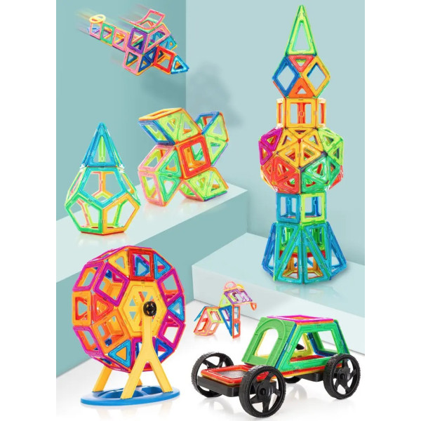 Магнітний конструктор Magical Magnet 3D з 98 деталей — це захоплива іграшка, яка відкриває дітям світ творчості, уяви та інженерного мислення. Деталі конструктора забезпечені вбудованими магнітами, що дає змогу легко з'єднувати елементи між собою, створюючи різні фігури, моделі машин, тварин, веж та інших конструкцій.