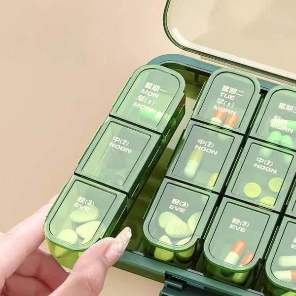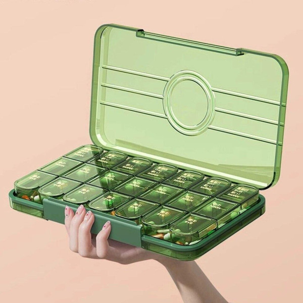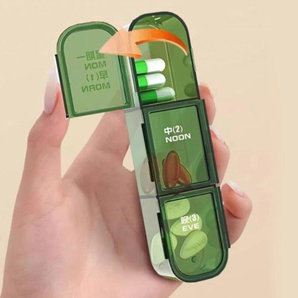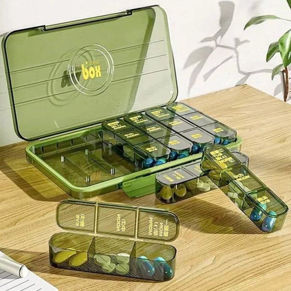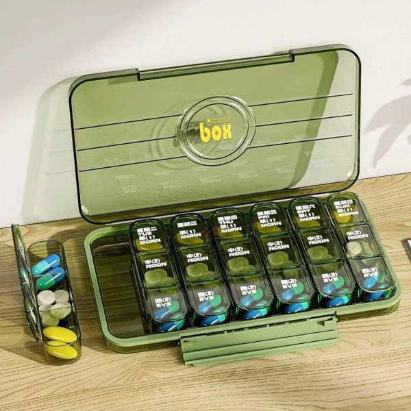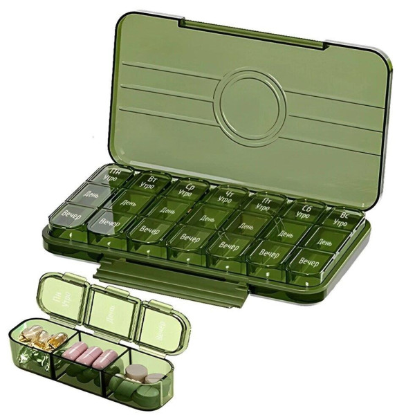 Корпус виготовлений із міцного та безпечного пластику, який не взаємодіє з ліками, що гарантує тривале використання та збереження препаратів. Компактні розміри органайзера дають змогу легко брати його із собою в сумку або зберігати вдома, не займаючи багато місця. Контейнер-диспенсер допомагає підтримувати точність і дисципліну в прийманні медикаментів, знижуючи ризик помилок.