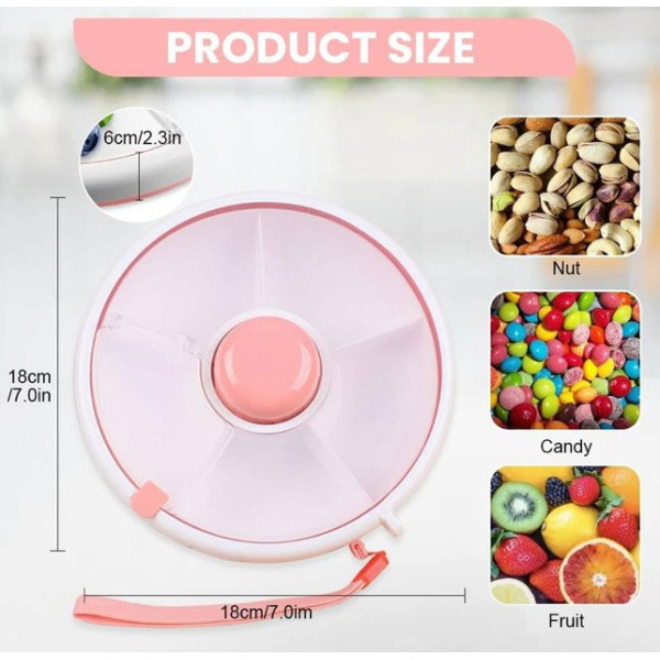 Обертовий ланчбокс AND 130 з 5 відділеннями — це практичне рішення для зберігання й подавання перекусів, фруктів, горіхів і снеків. Діаметр 18 см і висота 6 см роблять його компактним і зручним для сумки або рюкзака.