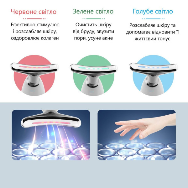 Ліфтинг-масажер для шиї та обличчя ES-1081 — це пристрій для комплексного догляду за шкірою в домашніх умовах. Він поєднує в собі мікрострукову терапію, LED-світло, іонотерапію й термомасаж, забезпечуючи видимий ліфтинг-ефект усього за 10 хвилин на день. Компактний та ергономічний прилад допомагає підтягнути шкіру, зменшити зморшки, позбутися другого підборіддя та поліпшити тонус шкіри.