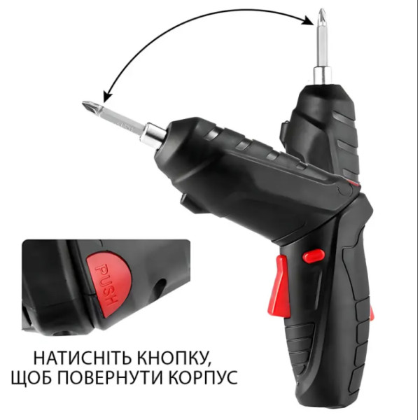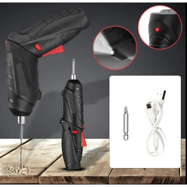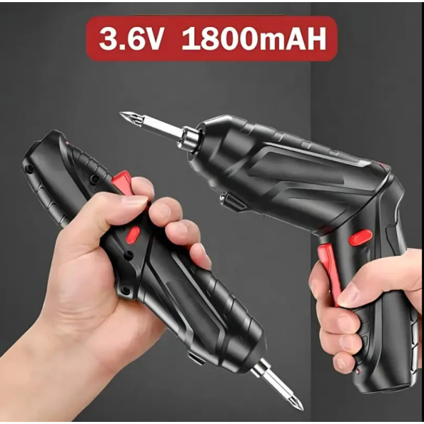 Акумуляторний дриль-шурупокрут 3,6V, 1800 mAh — компактний і універсальний інструмент для дому, що дає змогу свердлити дерево та вкручувати саморізи навіть у важкодоступних місцях. Багатофункціональна електровикрутка обладнана вбудованим світлодіодним ліхтариком для підсвічування робочої зони й обертовою ручкою, що змінює кут на 90° і 180° для зручності роботи.