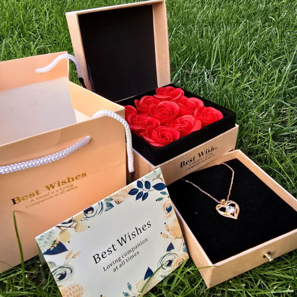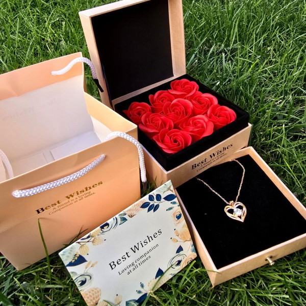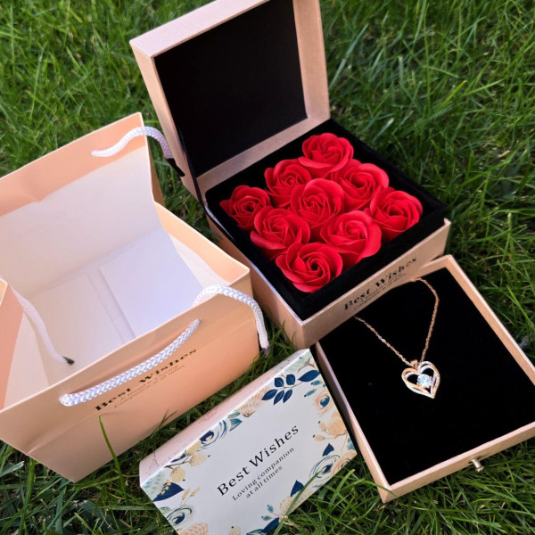Набір мильних троянд Best Wishes 9 штук у рожевій подарунковій скриньці з кулоном