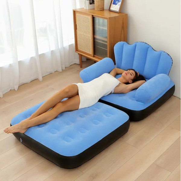 Надувний диван-трансформер Bestway 67356 з електронасосом 220V Multi-Max Air Couch, 152×188×64 см, блакитний, 5 варіантів трансформації