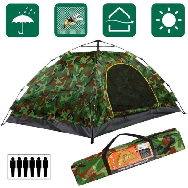 Намет автоматичний 6-місний 2х2.5 м Камуфляж, саморозкладний, з антимоскітною сіткою і міцним каркасом Fiberglass