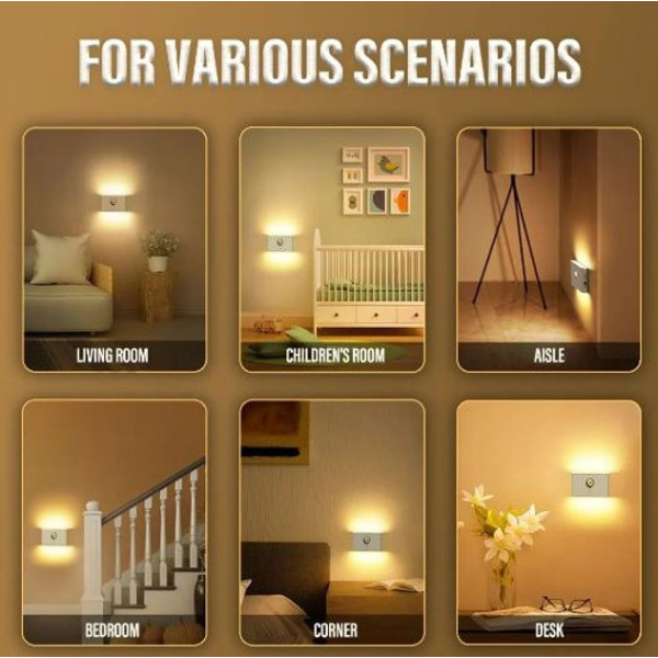 Настінний світильник із датчиком руху на акумуляторі USB, тепле біле світло, компактне