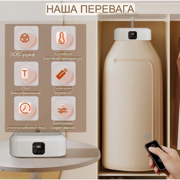 Підвісна електросушарка для одягу та білизни GYJ-002 з пультом і таймером, портативна сушарка з чохлом і терморегуляцією