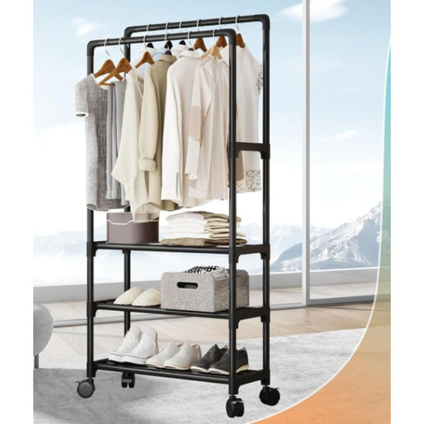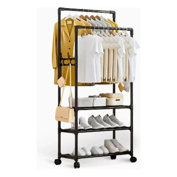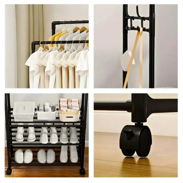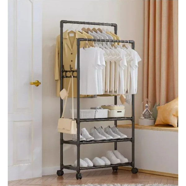 Подвійна підлогова стійка для одягу з полицею для взуття та телескопічним регулюванням висоти AND XL-1484