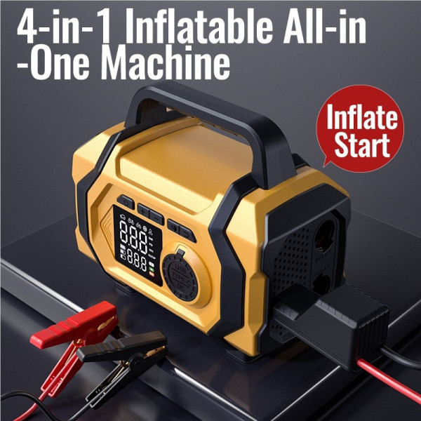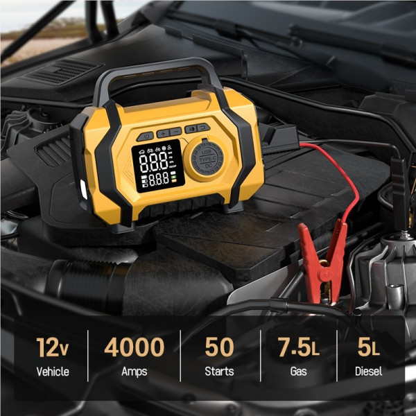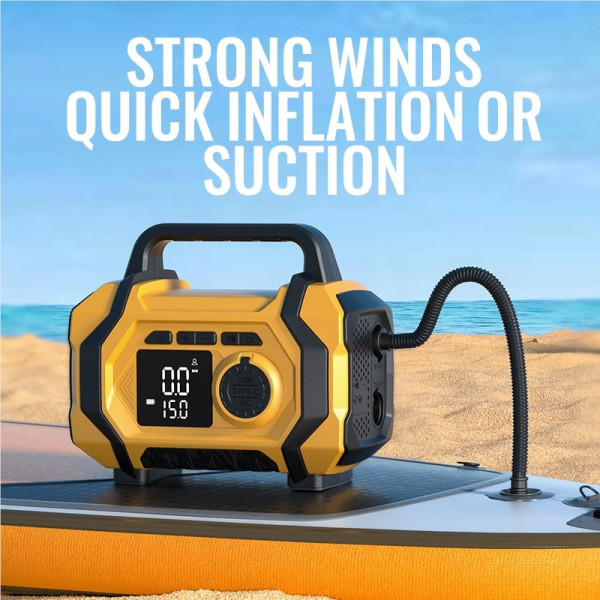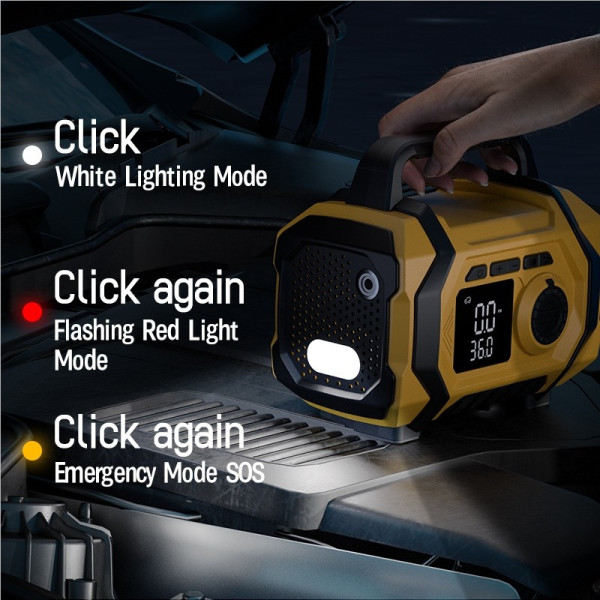 автомобільний насос з акумулятором і металевим корпусом призначений для швидкого та точного накачування шин. Пристрій обладнаний цифровим дисплеєм, який зображає поточний тиск і дає змогу автоматично встановлювати потрібні параметри. Підтримує роботу як від вбудованого акумулятора 11,1 В, так і від прикурювача, забезпечуючи універсальне використання в будь-яких умовах.