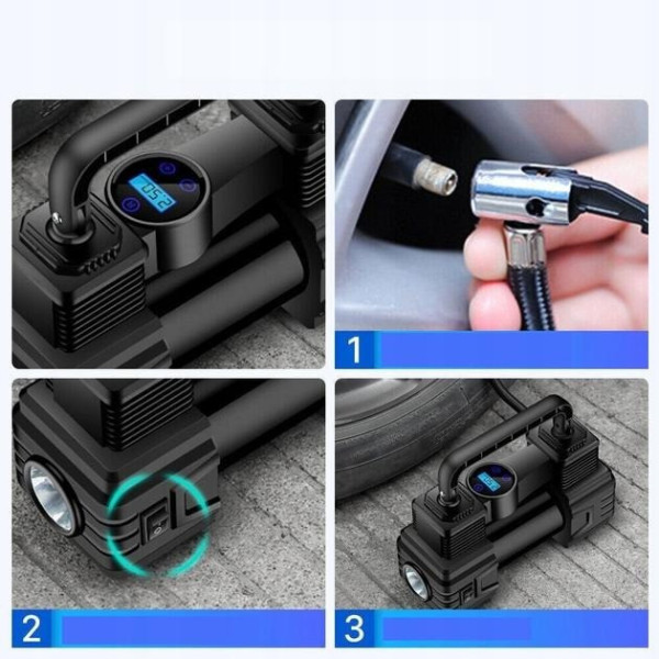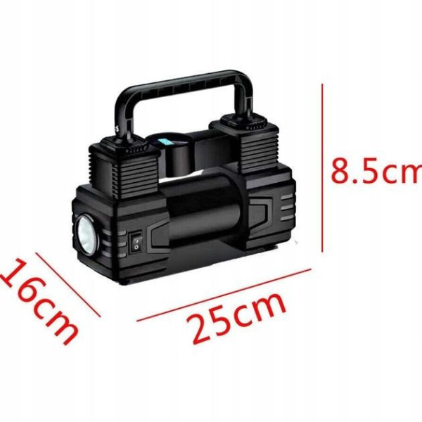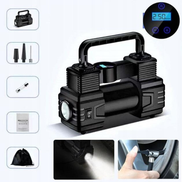 Завдяки поліпшеним металевим компонентам двигун працює швидше та тихіше, забезпечуючи стабільний потік повітря й захист від перегрівання. Компактні розміри та сумка для перенесення роблять компресор зручним у зберіганні та транспортуванні.