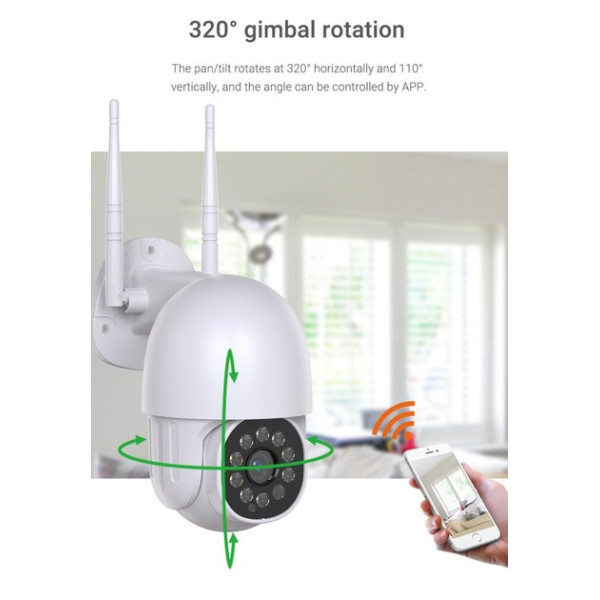 Вулична IP-камера AND V5 — надійне рішення для цілодобового відеоспостереження. Завдяки вологостійкому корпусу, камера підходить для встановлення на вулиці та захищена від дощу та пилу. Поворотний механізм із кутом огляду 360° і ширококутним об'єктивом 120° забезпечує повний контроль території без «сліпих зон».