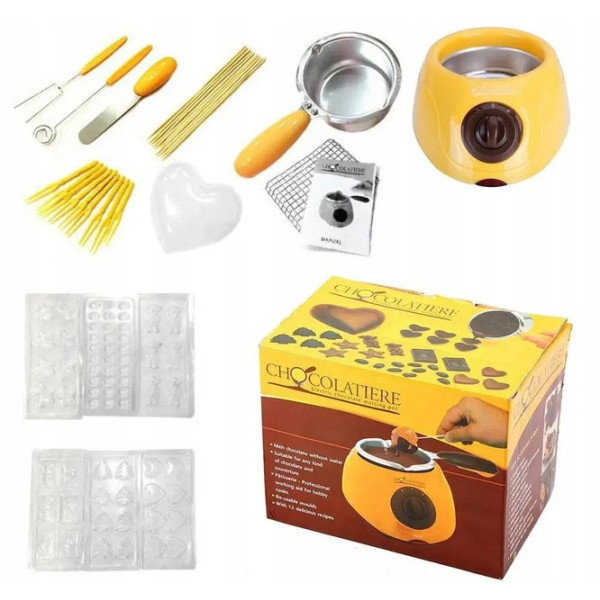 Прилад для приготування шоколадного фондю Chocolate Fondue Set з формами та аксесуарами, 200 г, неіржавка сталь