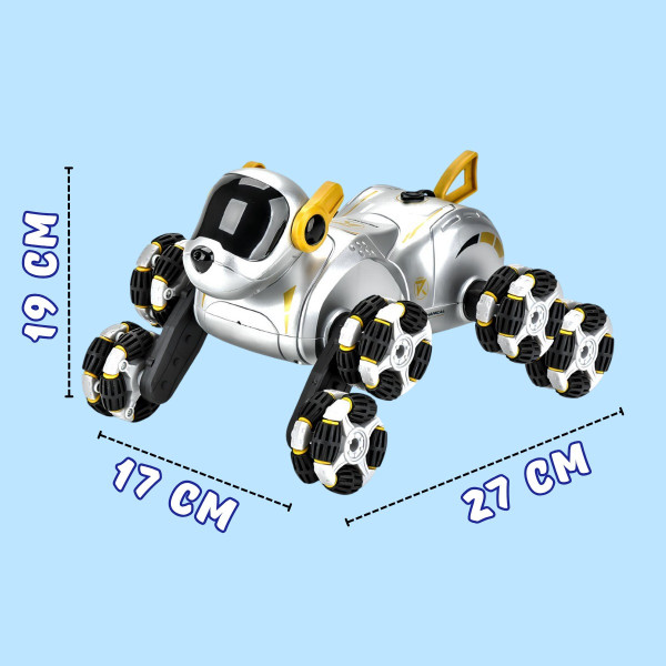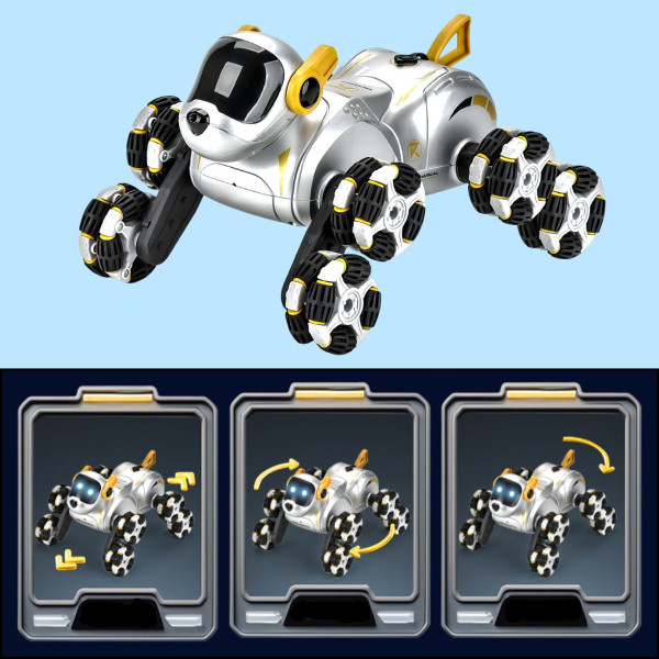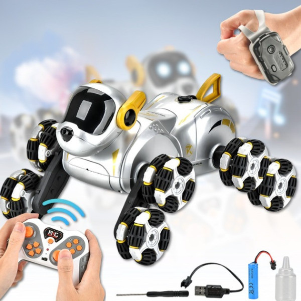 Радіокерований робот-собака Eight Wheeled ROBOT DOG — це сучасна інтерактивна іграшка нового покоління, яка поєднує в собі технології, рух і захопливу гру. Робот керується двома способами — за допомогою пульта дистанційного керування та браслета, реагуючи на команди та жести.