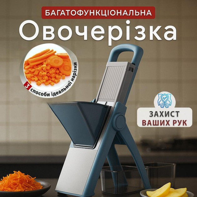 Многофункциональная овощерезка Vegetable Cutter — практичное и удобное устройство для быстрой и безопасной нарезки овощей и фруктов. Регулируемая толщина нарезки позволяет создавать тонкие слайсы для салатов или более крупные ломтики для тушения и запекания.