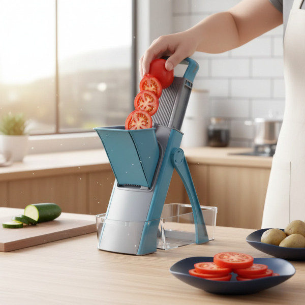 Vegetable Cutter ускоряет процесс готовки, обеспечивая аккуратные и ровные нарезки. Отлично подходит как для домашней кухни, так и для профессиональных кулинарных задач. Многофункциональная овощерезка сочетает шинковку, нарезку ломтиками, кубиками и терку в одном устройстве, экономя место и время.