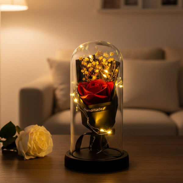 - LED-подсветка: Встроенная подсветка добавляет волшебный свет и акцентирует внимание на букете, создавая романтическую атмосферу.