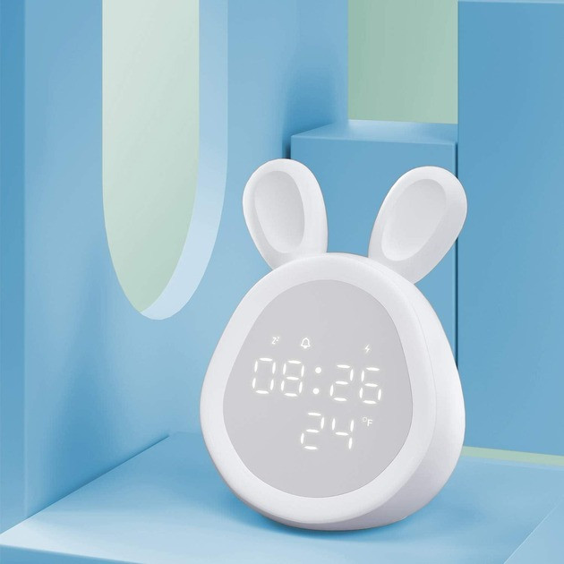 Эти настольные часы выполнены в виде милого зайчика и станут отличным дополнением к интерьеру детской. Они не только показывают время, но и помогают малышу чувствовать себя комфортно в темноте, а также обеспечивают плавное пробуждение благодаря регулируемому будильнику.