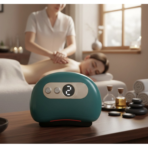 Электрический массажер-скребок гуаша с функцией нагрева, вибрации и микротоков, белый и зеленый