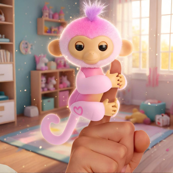 Игрушка обезьянка Fingerlings способна вращать головой, лапками и хвостом, также у обезьянки закрываются глаза и она может внезапно уснуть, вдоволь наигравшись с Вами. Благодаря встроенным сенсорам игрушка реагирует на все происходящее вокруг, создавая впечатление настоящего живого питомца.