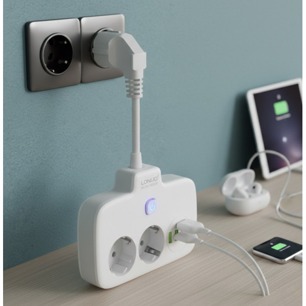 Сетевой удлинитель LDNIO SE2435 — это надежный и многофункциональный разветвитель, идеально подходящий для одновременного подключения бытовой техники, зарядных устройств и мобильных гаджетов. Модель сочетает в себе 2 сетевые розетки с защитой от детей, 4 USB-разъема (включая QC3.0 и Type-C PD) и продуманный эргономичный дизайн с индивидуальными кнопками управления питанием.