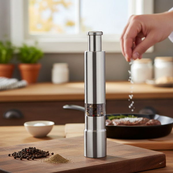 Мельница для специй перца соли ручная механическая из нержавеющей стали XL-552 – станет стильным аксессуаром на кухне или обеденном столе. Практическая блинчик рассчитан на помол одной рукой, то есть несколькими нажатиями большого пальца на поршень вы сможете подсолить/поперчить блюдо. При каждом очередном нажатии вы добавляете еще порцию специй.