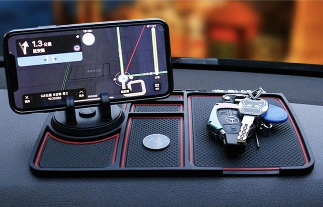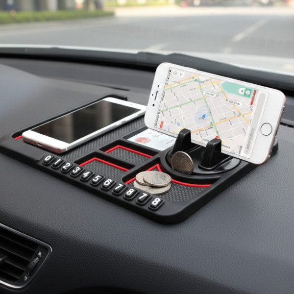 Нескользящий коврик-органайзер 4в1 для авто с держателем телефона и табличкой номера