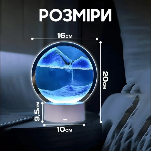 Многофункциональность: Эта лампа не только служит источником освещения, но и создает захватывающие картинки, меняющиеся каждый раз, когда песок переворачивается, что делает ее идеальным элементом для создания атмосферы в помещении