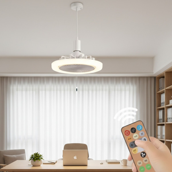 Подвесная лампа-вентилятор LED в патрон Е27 с пультом, 3 режима света и вентиляции