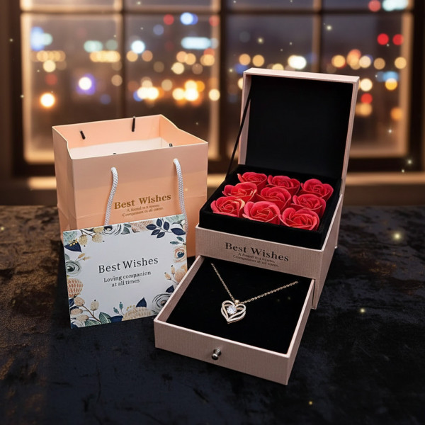 Набор оснащён стильным отделением для украшения — кольца, кулона или серёжек, что делает подарок ещё более впечатляющим и необычным. Каждая роза выполнена вручную из мыльной основы, с точным воспроизведением формы лепестков, создавая ощущение настоящего букета.