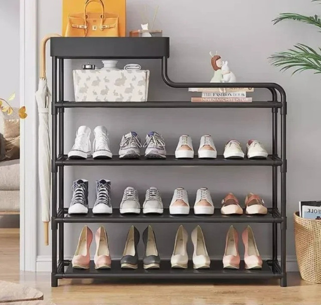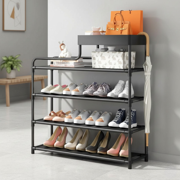 Полка изготовлена из высококачественных стальных труб с антикоррозионным покрытием, она обеспечивает надежную и долговечную поддержку вашей обуви. Колпачки на ножках предотвращают скольжение и защищают пол от повреждений.