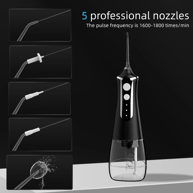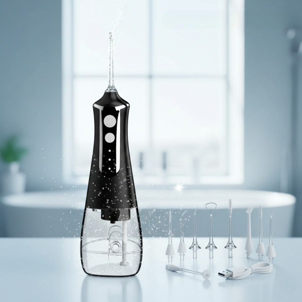 Портативный ирригатор для полости рта L10 с 5 насадками 300 мл черный