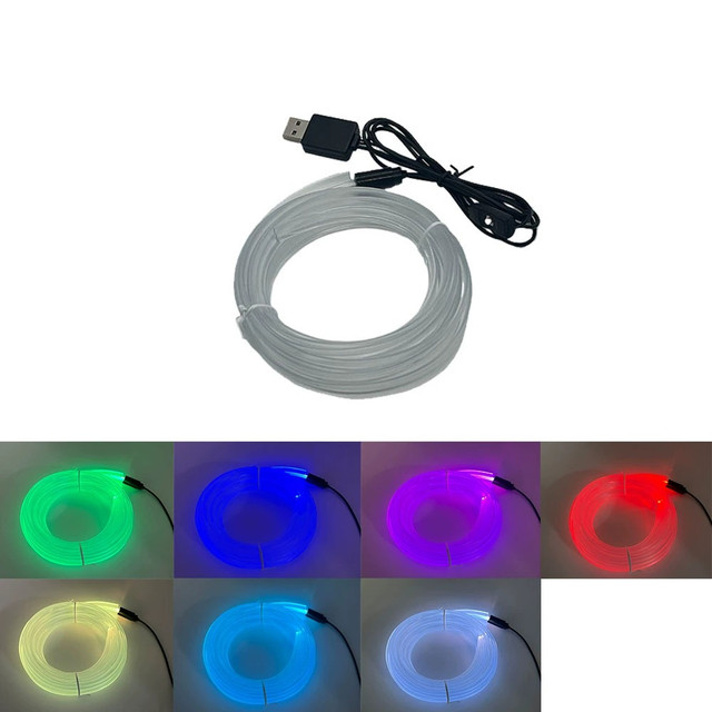 RGB подсветка салона авто 7 цветов гибкий неон 5 метров USB для приборки