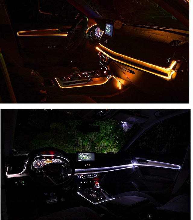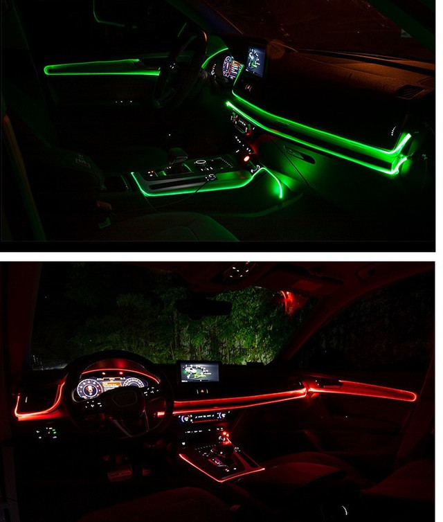 Гибкий холодный неон с кантом - отличное решение для тюнинга интерьера автомобиля. Неоновый молдинг используется для отделки салона, выделения контуров, а также, для подчеркивания изгибов передней панели автомобиля, дверных карт и прочих элементов салона. Электролюминесцентная лента создает холодное и не яркое "неоновое" освещение, поэтому может служить в качестве подсветки салона автомобиля.
