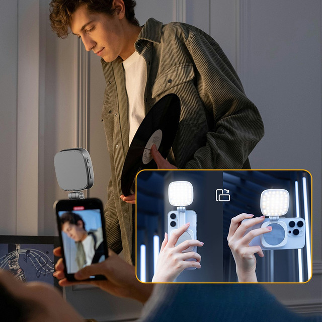 Благодаря встроенному магнитному креплению лампу можно легко установить на устройства с поддержкой MagSafe (iPhone 12/13/14), а для других моделей в комплекте предусмотрен универсальный зажим-клипса. Светильник оснащён 45 LED-диодами, 3 режимами цветовой температуры (тёплый, нейтральный и холодный свет) и 4 уровнями яркости. Это позволяет адаптировать освещение под любые условия.