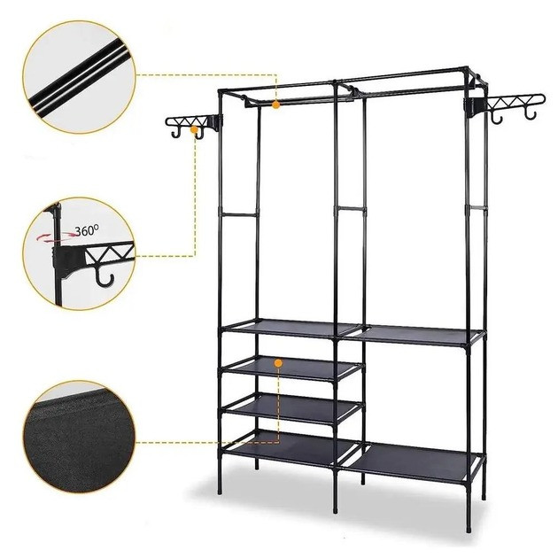 Вешалка напольная CR162 металлическая с 12 крючками разборная 162×36×175 см черная