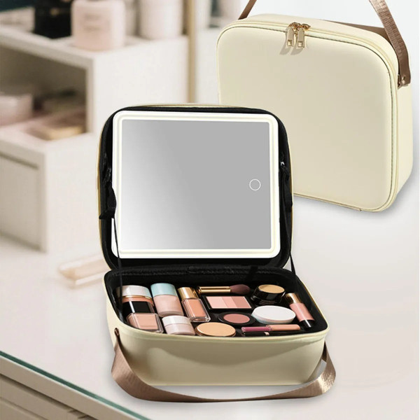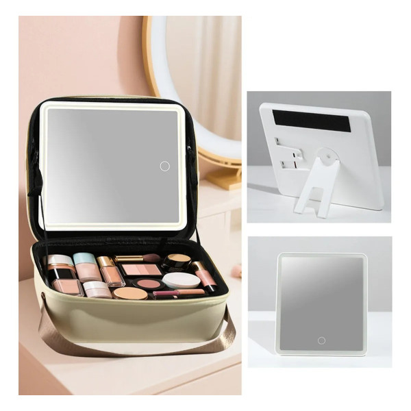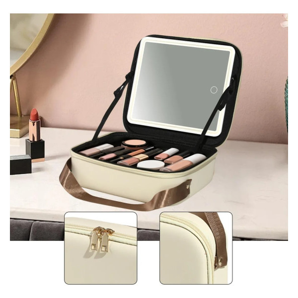 Елегантна сумка-органайзер для косметики з дзеркалом і LED-підсвіткою — стильне рішення для зберігання і зручного використання косметичних засобів. Вбудоване дзеркало з м'якою світлодіодною підсвіткою робить макіяж комфортним навіть в умовах недостатнього освітлення.