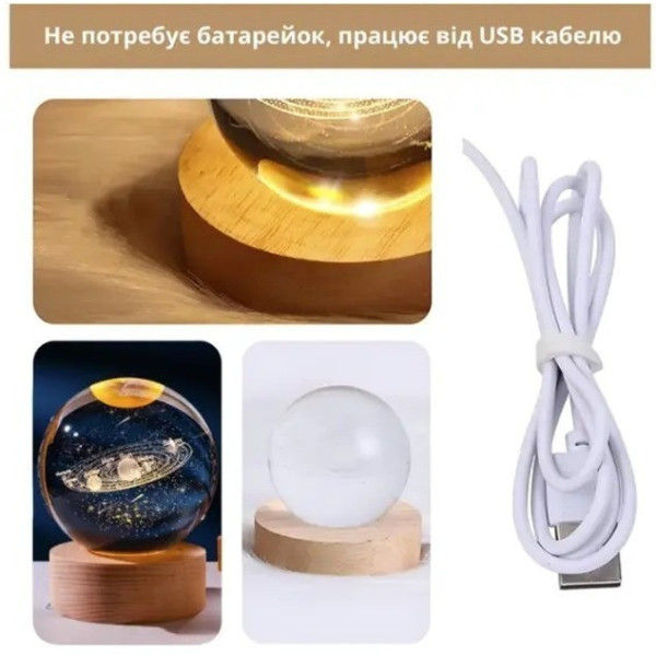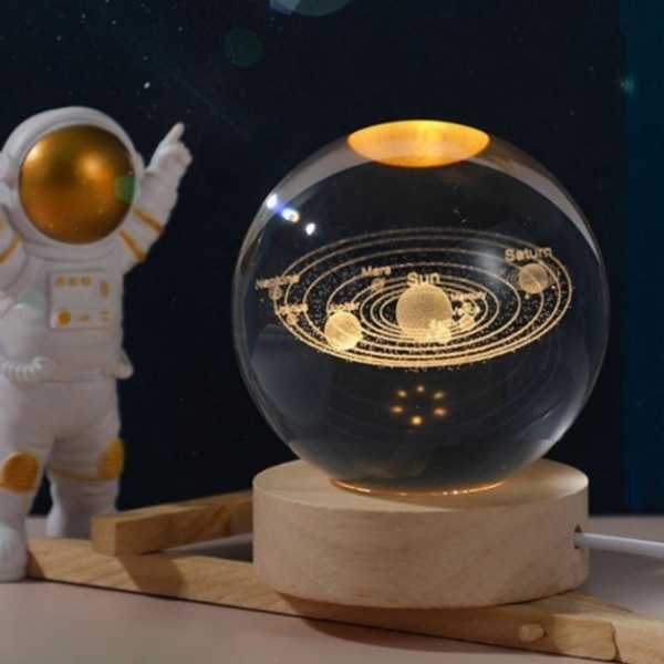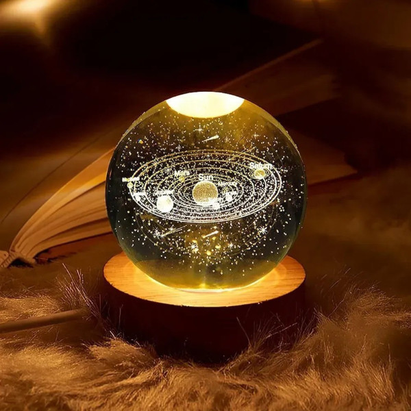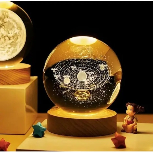 3D нічник у формі кришталевої кулі із зображенням сонячної системи створює затишне та м'яке освітлення, що ідеально підходить для спальні, дитячої або робочого простору. Світлодіодне підсвічування теплого відтінку забезпечує комфортне світло, не нагріваючись, що робить пристрій безпечним для дітей. Деталізоване гравіювання планет створює ефект глибини та додає декоративний елемент в інтер'єр.