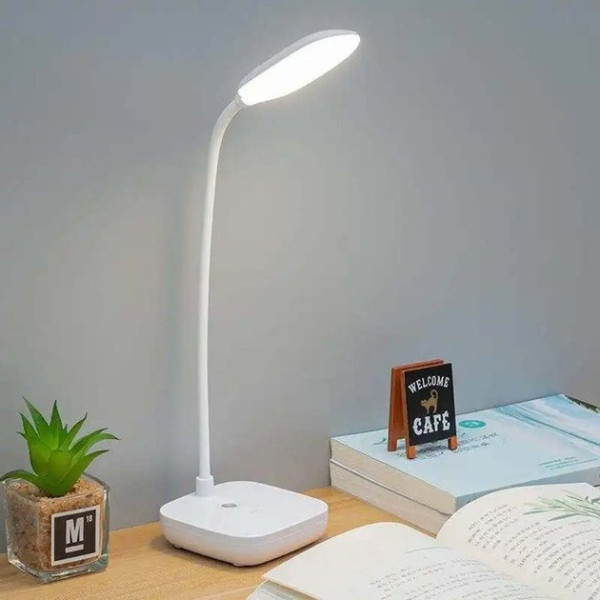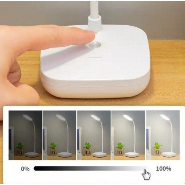 Світлодіодна настільна лампа з акумулятором, регульована за висотою та яскравістю, біла