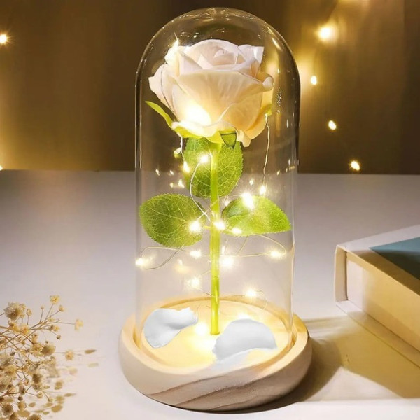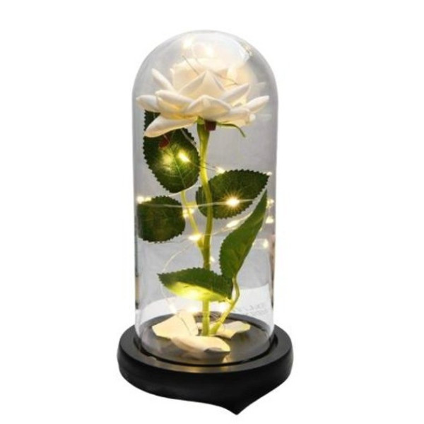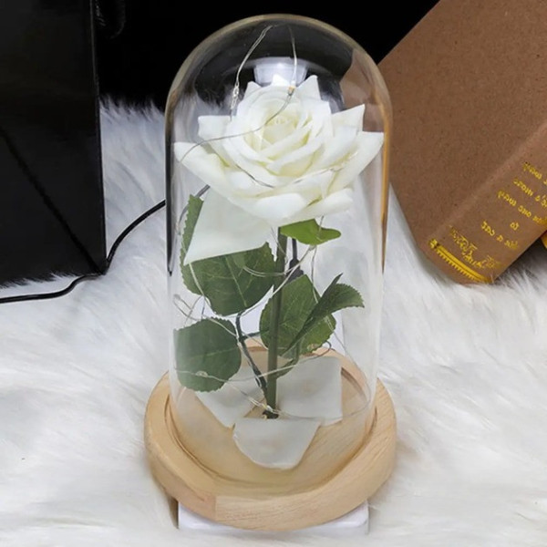 Троянда в колбі біла з LED-підсвіткою та батарейками, декоративний нічник для спальні та дітей