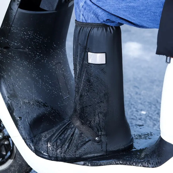 Виготовлені з міцного та зносостійкого ПВХ-матеріалу із захистом від ультрафіолету, бахіли стійкі до пошкоджень і довговічні у використанні. Герметичні пропаяні шви надійно з'єднують верх із підошвою, запобігаючи протіканню. Антиковзна гумова підошва забезпечує стійкість на мокрих і слизьких поверхнях, а додатковий ПВХ-вставка під блискавкою захищає ноги від попадання води.