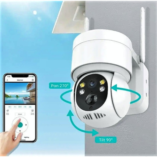 Поворотний механізм PTZ (Pan-Tilt-Zoom) з кутом огляду до 320° по горизонталі та 90° за вертикаллю дає змогу контролювати велику територію, а вбудований мікрофон забезпечує запис звуку та двосторонній зв'язок. Камера підтримує карти пам'яті великого обсягу, має вологозахист IP66 і керується через мобільний застосунок ISEE, забезпечуючи швидкий доступ до онлайн-перегляду, запису та повідомлень про рух.