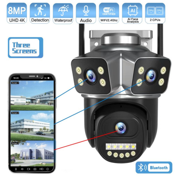 Камера підтримує під'єднання через Wi-Fi 2.4 ГГц і 4G, що робить її зручною для використання навіть у місцях без дротового інтернету. Вбудовані мікрофон і динамік забезпечують двобічний аудіозв'язок, даючи змогу чути та говорити в режимі реального часу.